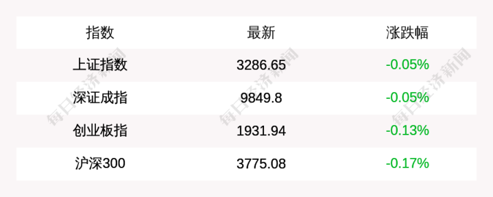 每经AI快讯:北京时间4月29日15:00,上证指数收盘下跌1.76点,跌幅为0.05%,报收3286.65点,成交额4308.81亿元;深证成指收盘下跌5.4点,跌幅为0.05%,报收9849.8点,成交额5912.39亿元;创业板指收盘下跌2.52点,跌幅为0.13%,报收1931.94点,成交额2707.37亿元;沪深300收盘下跌6.54点,跌幅为0.17%,报收3775.08点,成交额1974.63亿元。
